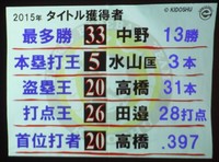そして2015年のMVPには首位打者、盗塁王の二冠を獲得した高橋が中野との接戦を制し、見事年間MVPを獲得した。高橋は近年チームの弱点とされていた内野陣の強化におおいに貢献。GBNリーグ公式戦でも均衡を破る貴重な決勝打を放つなど勝負強さも発揮した。来シーズンもチームのリードオフマンとして活躍を期待したい。